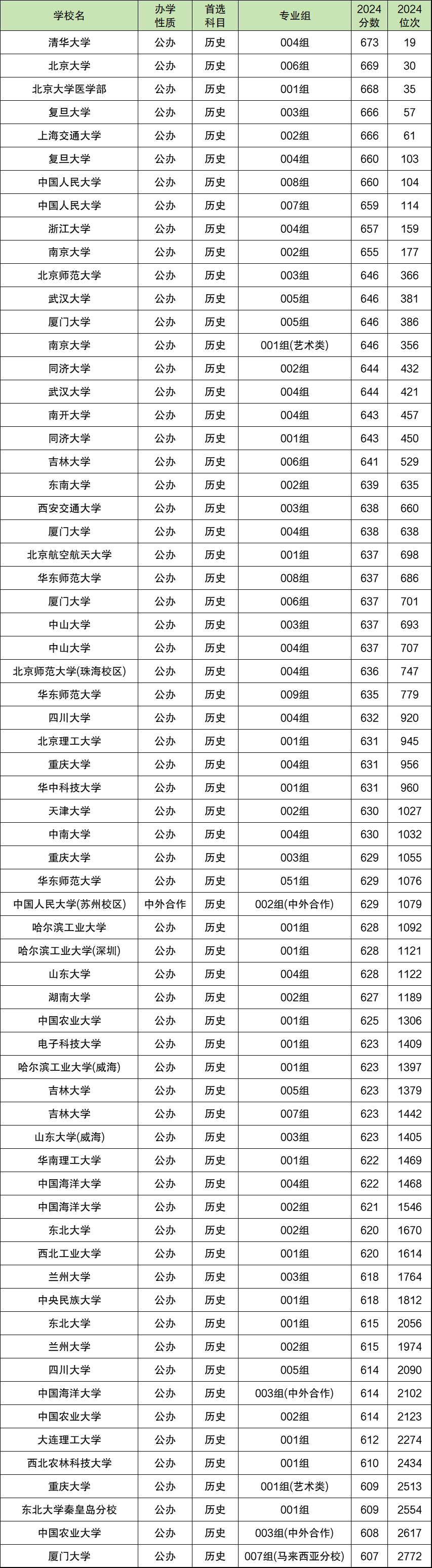 还有一批985院校专业组收分较低,分别是:西北农林科技大学004组(606分)、华中科技大学006组(605分)、山东大学007组(599分)。