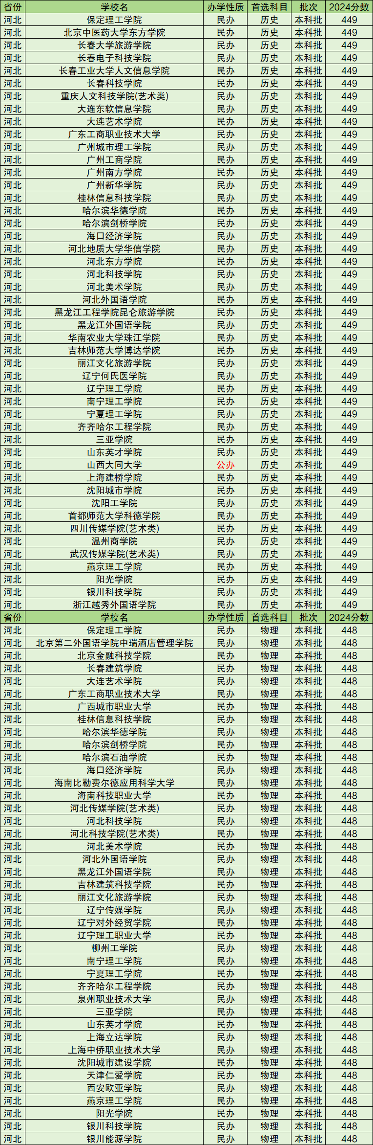 当然不管是哪一个省份,过线就能上的多数属于民办,比如河北省2024压线能上的公办本科只有山西大同大学,因此各位同学在报考前也许考虑家庭条件。